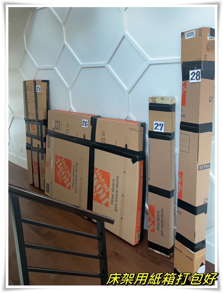 結果,最後箱子是不夠用,因為床架拆解後還是滿大的,紙箱也需要改造一下才能包住;這可是從小陪伴我長大的床,我無法拋棄它,本人有些許強迫症,包裝床架的時候也是層層保護,外層加上紙箱去包裝。