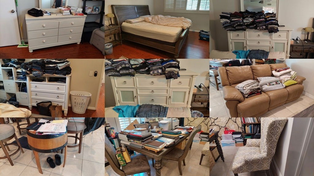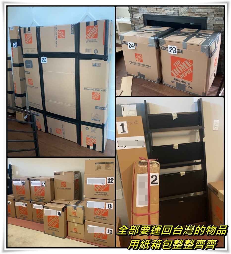 下圖是原本想運回台灣的家具行李等一堆雜物,但受限於台灣房子太小,部分家具雜物只能選擇在美國賣掉或丟掉。